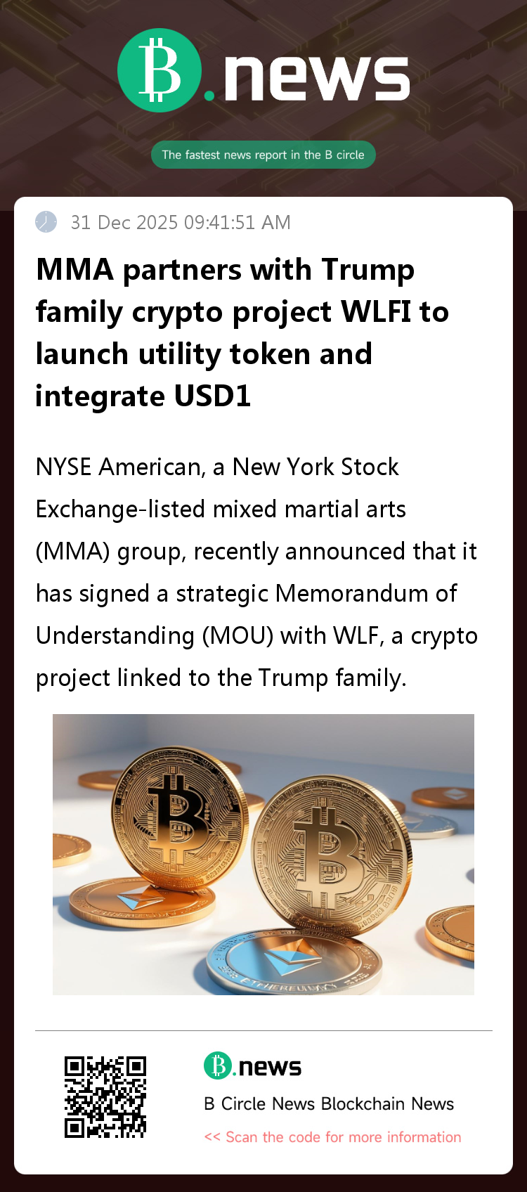 This collaboration between MMA and World Liberty Financial signifies the traditional combat sports industry's active expansion into the blockchain and digital asset fields, and provides a new example of resource integration between a publicly traded company and a family-backed crypto project. Both parties stated that they will jointly promote technological and market expansion, further connecting the sports community with the crypto economy.