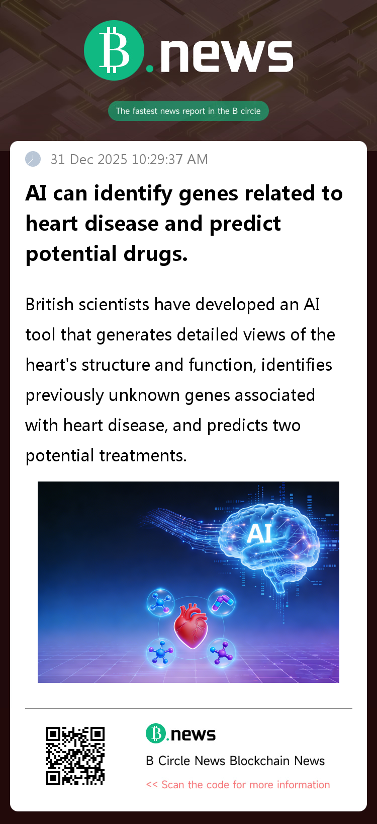 Cailian Press, December 31st – Scientists at the UK Medical Research Council's Medical Sciences Laboratory have developed an artificial intelligence (AI) tool called CardioKG. By generating detailed views of the heart's structure and function, it identifies previously unknown genes associated with heart disease and predicts two potential treatments. This achievement helps accelerate disease gene identification, improves the accuracy of drug efficacy predictions, and provides a new tool for the diagnosis and treatment of heart disease. The findings were published in the latest issue of *Nature*. (Source: Cailian Press)