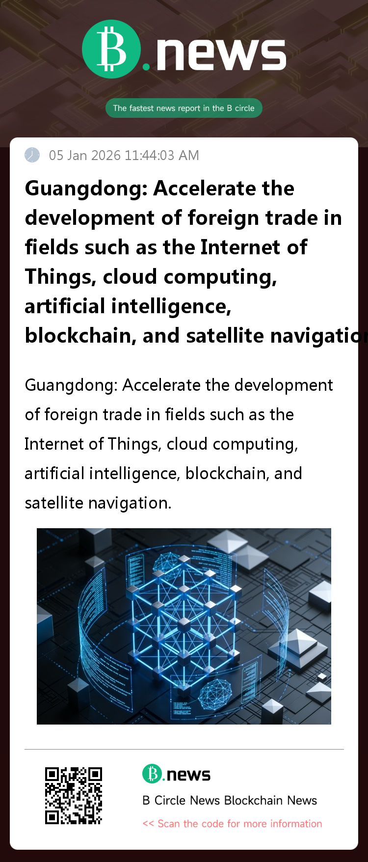 People's Finance News, January 5th – The General Office of the Guangdong Provincial Committee of the Communist Party of China and the General Office of the Guangdong Provincial People's Government issued an implementation opinion on promoting high-quality development of digital trade and service trade through high-level opening-up, vigorously developing digital technology trade. The opinion emphasizes strengthening support for digital technology research and development, accelerating foreign trade in fields such as the Internet of Things, cloud computing, artificial intelligence, blockchain, and satellite navigation. It also calls for expanding international technology cooperation networks, supporting the transformation of technological achievements, and facilitating cross-border technology transfer from R&D centers. Support is provided for the establishment of the Guangdong-Macao Hengqin International Advanced Technology Application Promotion Center, connecting with Macao, Portuguese-speaking countries, and other important domestic and international research institutions, universities, leading innovative enterprises, and innovation consortia to attract globally competitive technology companies to the Hengqin Guangdong-Macao In-Depth Cooperation Zone. The opinion also promotes the development of green technology and green service trade, encouraging the import of technologies and services related to energy conservation, carbon reduction, environmental protection, and ecological governance, expanding the export of green and energy-saving technologies and services, and strengthening international cooperation in green technologies. (Source: People's Finance News)
