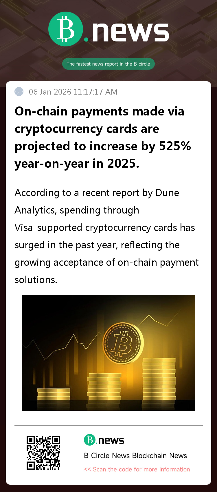 According to a recent report by Dune Analytics, spending via Visa-supported cryptocurrency cards surged dramatically over the past year, reflecting the increasing acceptance of on-chain payment solutions. Data shows that on-chain payments via cryptocurrency cards grew by 525% in 2025 compared to the previous year. Total cryptocurrency spending via Visa-issued cryptocurrency cards climbed from $14.6 million in January 2025 to $91.3 million by the end of the year.