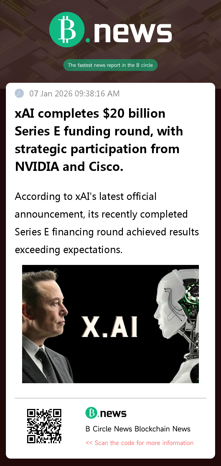 Of particular note is the participation of industry leaders NVIDIA and Cisco as strategic investors, further strengthening xAI's strategic synergy in AI computing power and infrastructure.