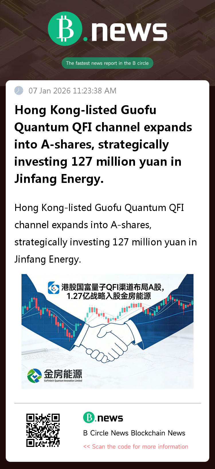 Guofu Quantum Innovation Limited (00290.HK, hereinafter referred to as "Guofu Quantum" or the "Group") is pleased to announce that its wholly-owned subsidiary, Fuqiang Asset Management Limited, as a Qualified Foreign Institutional Investor (QFI), recently successfully signed a Share Transfer Agreement with the controlling shareholder and actual controller of Jinfang Energy Group Co., Ltd. (001210.SZ, hereinafter referred to as "Jinfang Energy"). Through the "Fuqiang Asset Management Limited - Quantum Power - R" QFI account, it strategically invested 8,257,025 unrestricted shares of Jinfang Energy through an agreement transfer, accounting for 5.27% of its total share capital, with a total investment of approximately RMB 127 million.