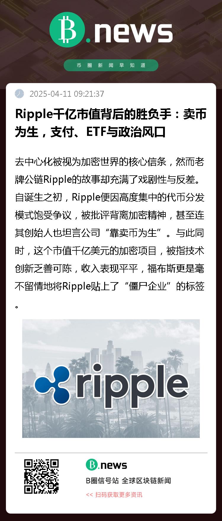 去中心化被视为加密世界的核心信条,然而老牌公链Ripple的故事却充满了戏剧性与反差。自诞生之初,Ripple便因高度集中的代币分发模式饱受争议,被批评背离加密精神,甚至连其创始人也坦言公司“靠卖币为生”。与此同时,这个市值千亿美元的加密项目,被指技术创新乏善可陈,收入表现平平,福布斯更是毫不留情地将Ripple贴上了“僵尸企业”的标签。