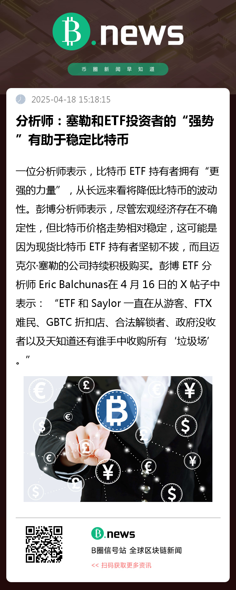 一位分析师表示,比特币 ETF 持有者拥有“更强的力量”,从长远来看将降低比特币的波动性。
