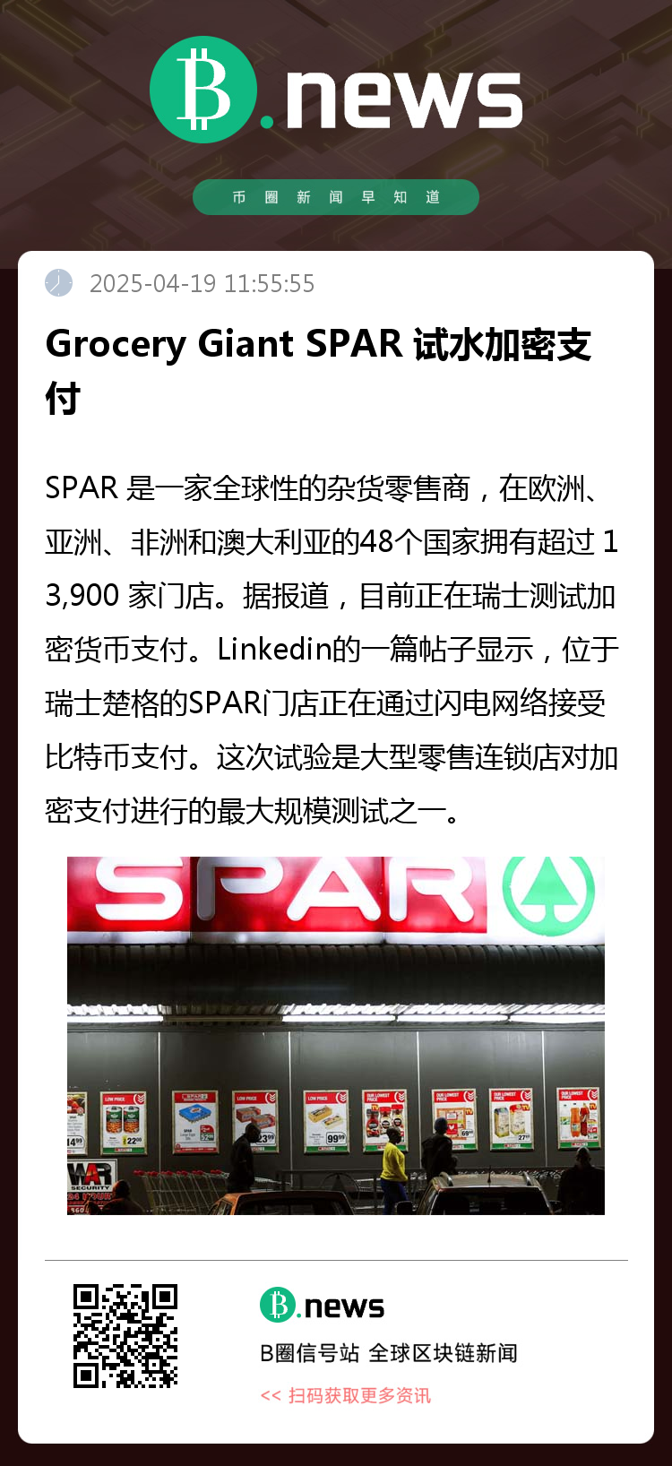 SPAR 此举表明,他们对迎合持有加密货币数量增加的人群以及探索数字支付方式的意愿日益增长。该试验可能会受到密切关注,以评估在主流零售环境中加密货币支付的可行性和客户需求。
