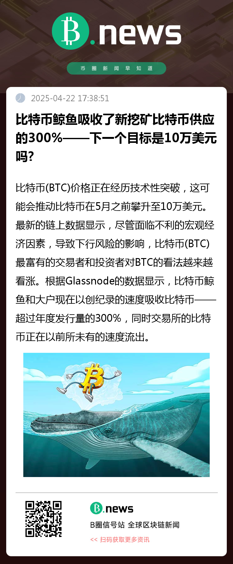 比特币鲸鱼吸收了300%的新供应