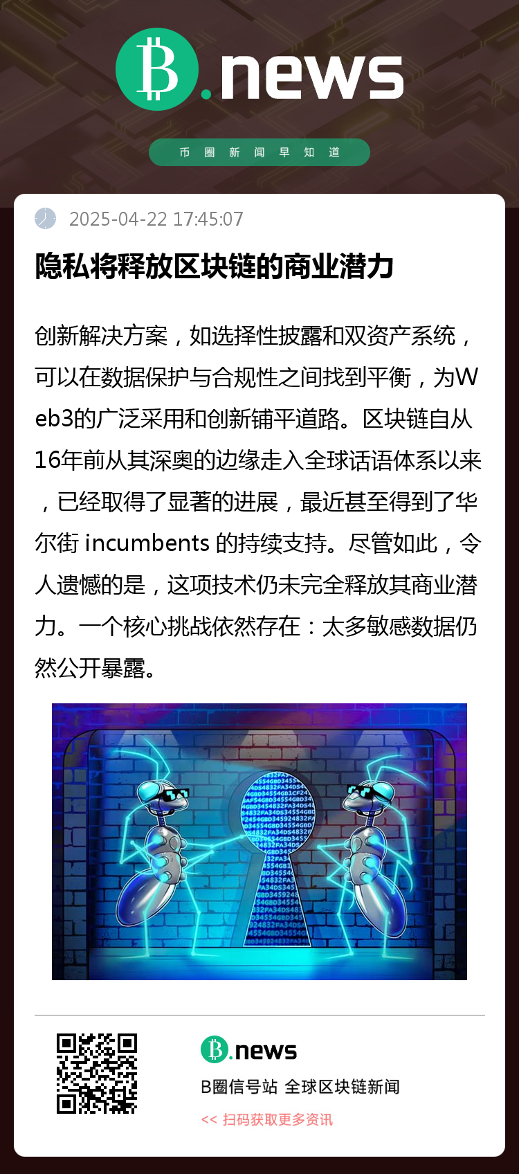 区块链自从16年前从其深奥的边缘走入全球话语体系以来,已经取得了显著的进展,最近甚至得到了华尔街 incumbents 的持续支持。尽管如此,令人遗憾的是,这项技术仍未完全释放其商业潜力。一个核心挑战依然存在:太多敏感数据仍然公开暴露。