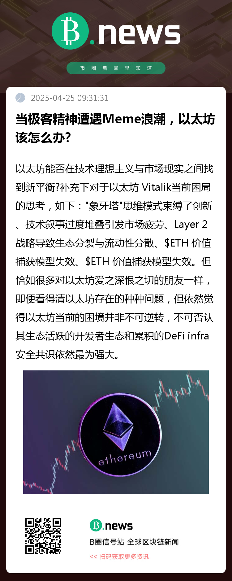 以太坊能否在技术理想主义与市场现实之间找到新平衡?顺着这个讨论,补充下对于以太坊 Vitalik当前困局的思考,如下: