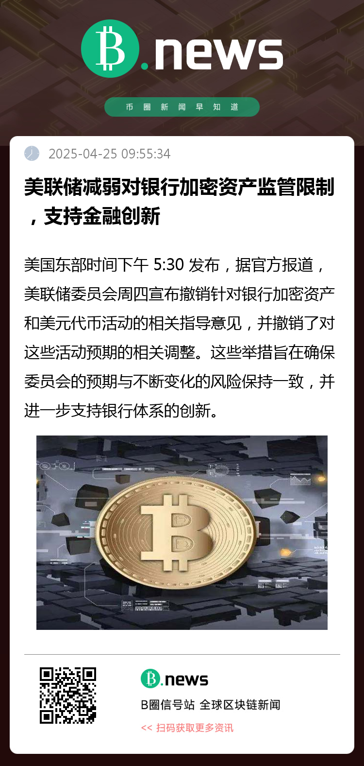 美国东部时间下午 5:30 发布,据官方报道,美联储委员会周四宣布撤销针对银行加密资产和美元代币活动的相关指导意见,并撤销了对这些活动预期的相关调整。这些举措旨在确保委员会的预期与不断变化的风险保持一致,并进一步支持银行体系的创新。
