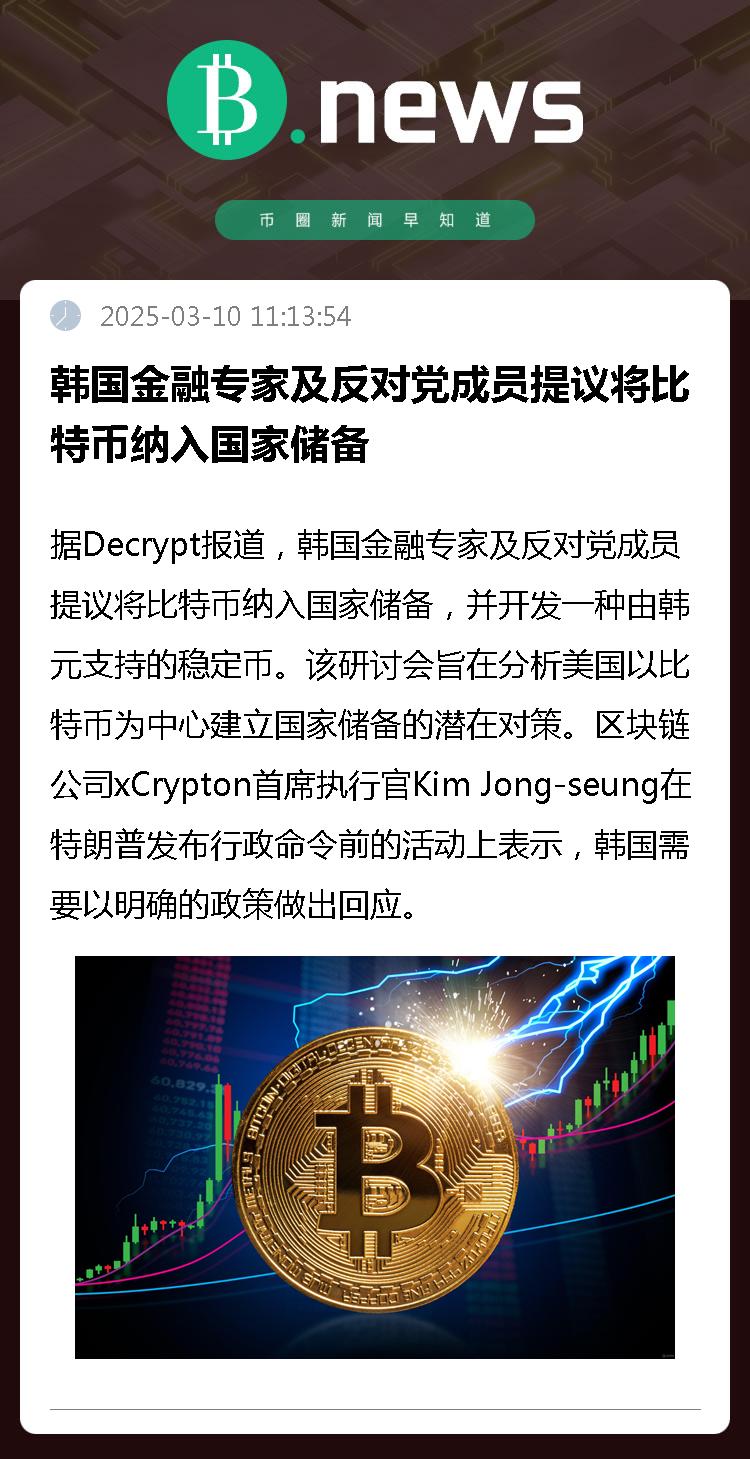 据Decrypt报道,韩国金融专家及反对党成员提议将比特币纳入国家储备,并开发一种由韩元支持的稳定币。