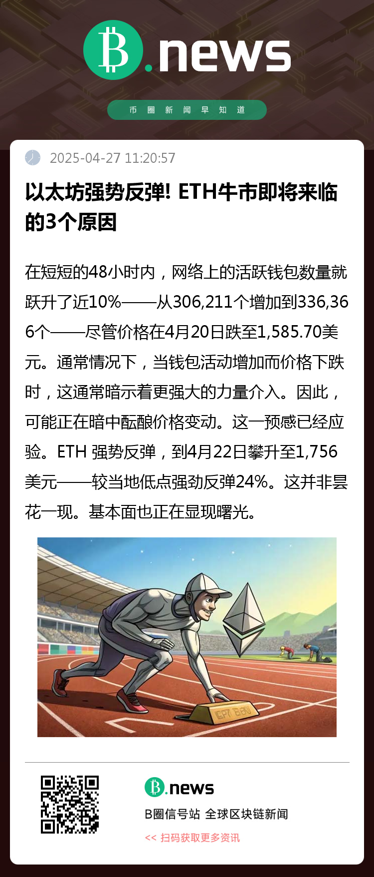 在短短的 48 小时内,网络上的活跃钱包数量就跃升了近 10%——从 306,211 个增加到 336,366 个——尽管价格在 4 月 20 日跌至 1,585.70 美元。