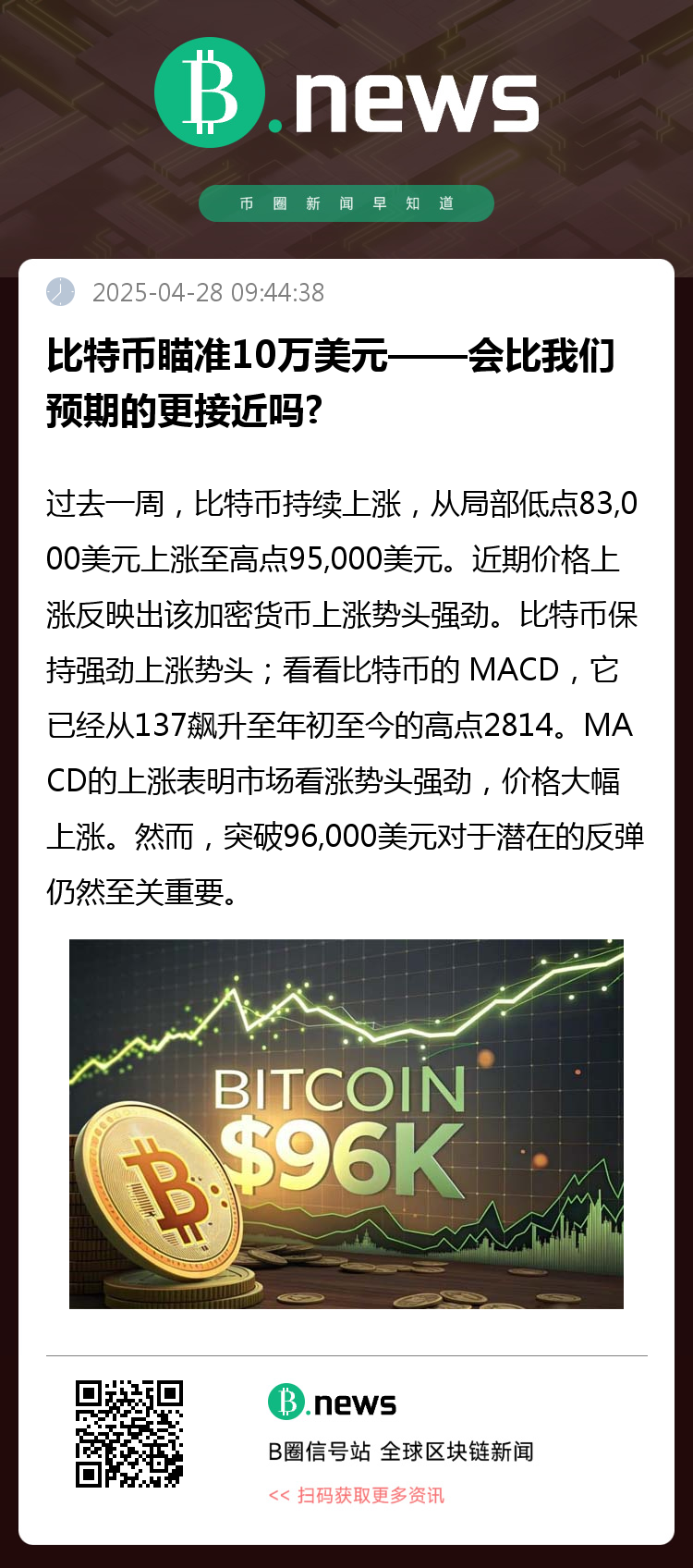 将 96,000 美元转化为支撑位可能会为超过 100,000 美元的反弹铺平道路。
