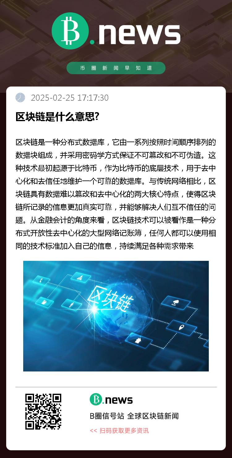 区块链是一种分布式数据库,它由一系列按照时间顺序排列的数据块组成,并采用密码学方式保证不可篡改和不可伪造。这种技术最初起源于比特币,作为比特币的底层技术,用于去中心化和去信任地维护一个可靠的数据库。与传统网络相比,区块链具有数据难以篡改和去中心化的两大核心特点,使得区块链所记录的信息更加真实可靠,并能够解决人们互不信任的问题。从金融会计的角度来看,区块链技术可以被看作是一种分布式开放性去中心化的大型网络记账簿,任何人都可以使用相同的技术标准加入自己的信息,持续满足各种需求带来的数据录入需要在。