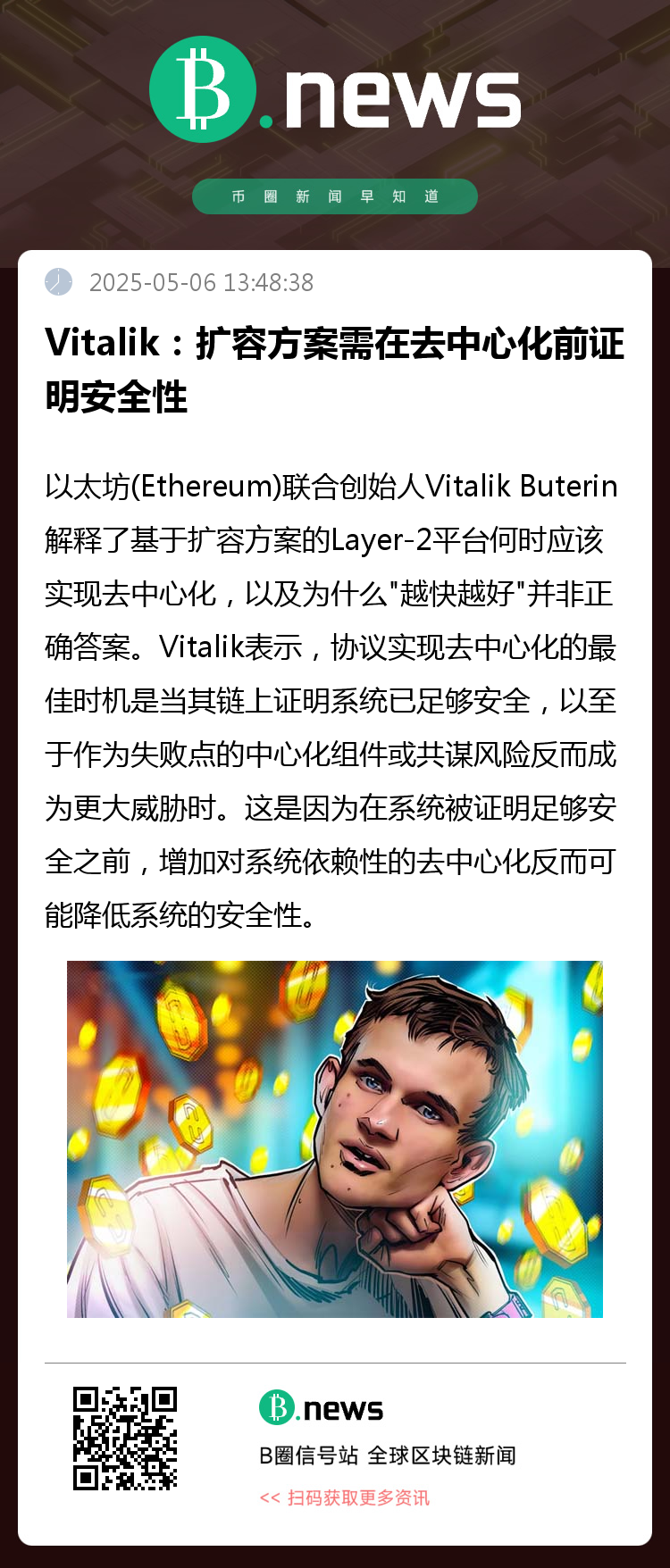以太坊(Ethereum)联合创始人Vitalik Buterin解释了基于扩容方案的Layer-2平台何时应该实现去中心化,以及为什么"越快越好"并非正确答案。