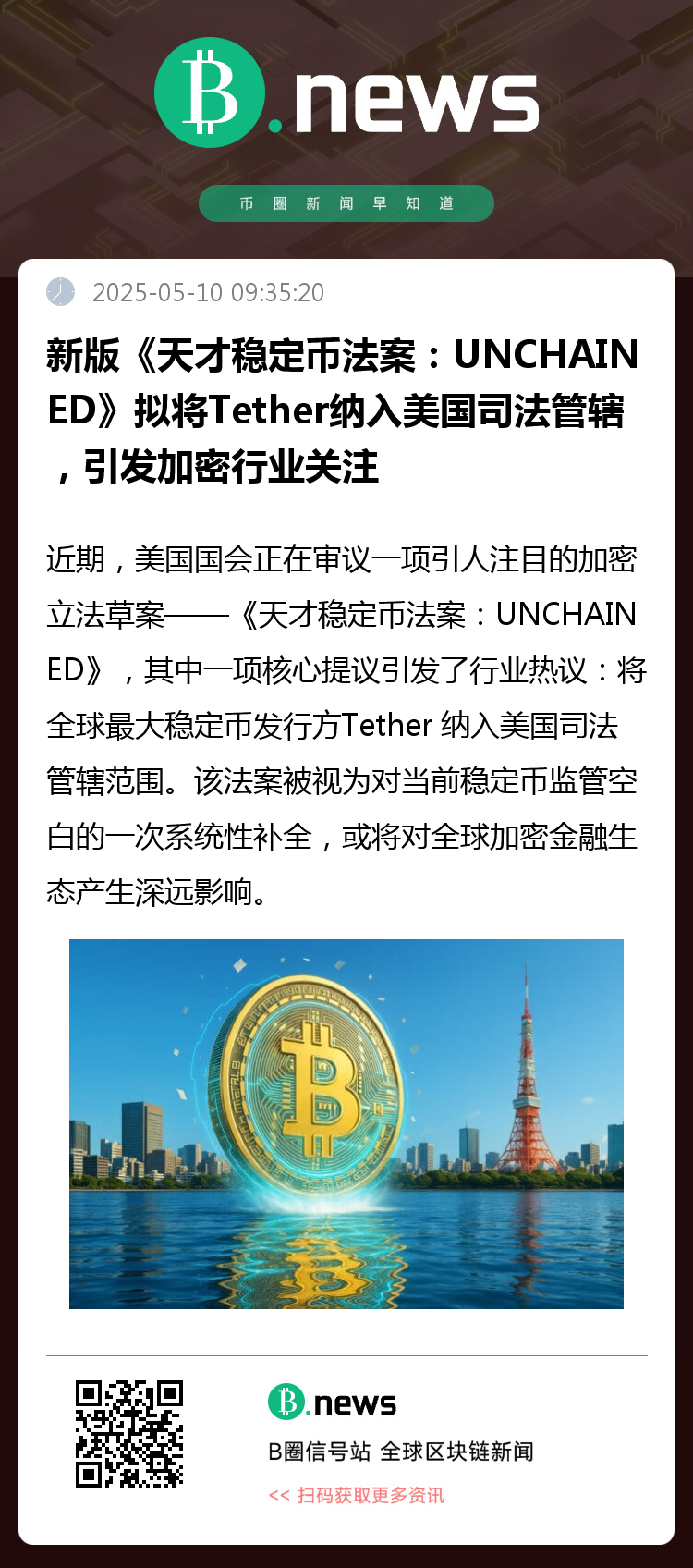 近期,美国国会正在审议一项引人注目的加密立法草案——《天才稳定币法案:UNCHAINED》(The Genius Stablecoin Act: UNCHAINED),其中一项核心提议引发了行业热议:将全球最大稳定币发行方 Tether 纳入美国司法管辖范围。该法案被视为对当前稳定币监管空白的一次系统性补全,或将对全球加密金融生态产生深远影响。