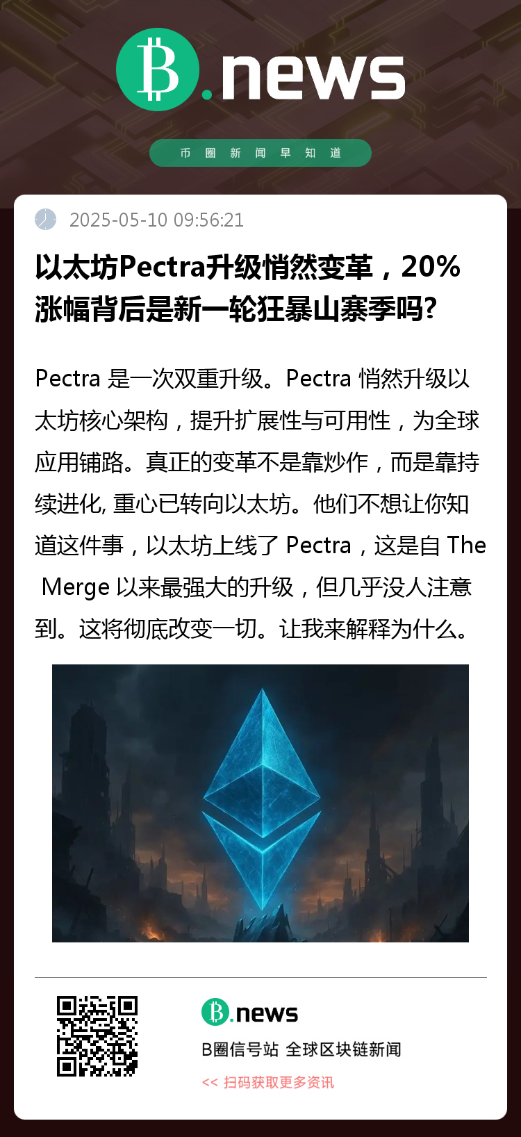 他们不想让你知道这件事,以太坊上线了 Pectra,这是自 The Merge 以来最强大的升级,但几乎没人注意到。