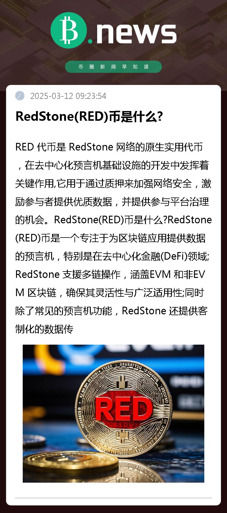 RedStone(RED)币是什么?RedStone(RED)币是一个专注于为区块链应用提供数据的预言机,特别是在去中心化金融(DeFi)领域;RedStone 支援多链操作,涵盖EVM 和非EVM 区块链,确保其灵活性与广泛适用性;同时除了常见的预言机功能,RedStone 还提供客制化的数据传送服务,允许DApps 根据特定需求灵活获取数据,这在传统预言机中较为少见。