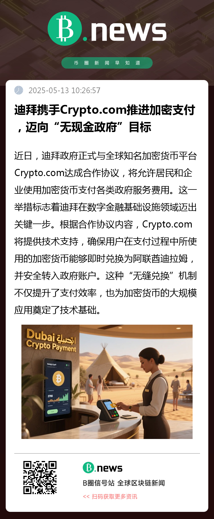 根据合作协议内容,Crypto.com将提供技术支持,确保用户在支付过程中所使用的加密货币能够即时兑换为阿联酋迪拉姆,并安全转入政府账户。这种“无缝兑换”机制不仅提升了支付效率,也为加密货币的大规模应用奠定了技术基础。