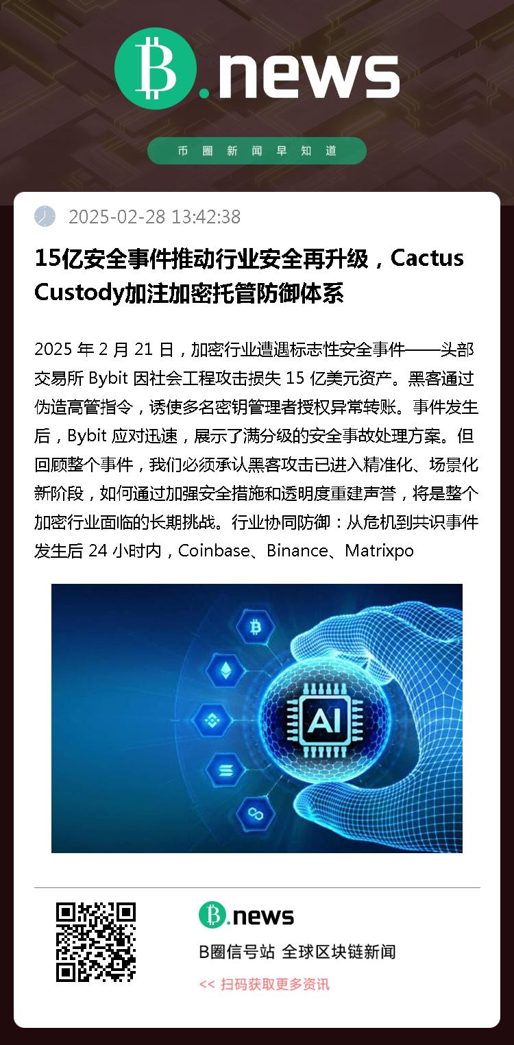在这场安全风暴中,行业领先的合规数字资产托管平台 Cactus Custody 给出了独特的解题思路。其在官方 X 上表示:“此次攻击融合了‘高级社工+0day 漏洞+定制化代码’三重手段,风险往往藏在‘隐秘的角落’。”