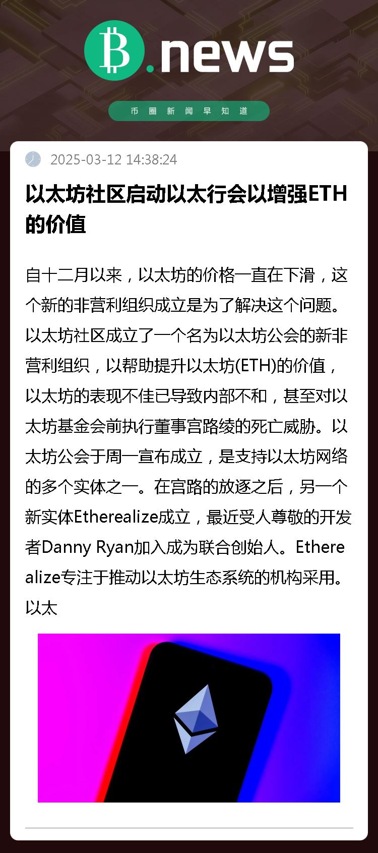 以太坊社区成立了一个名为以太坊公会的新非营利组织,以帮助提升以太坊(ETH)的价值,以太坊的表现不佳已导致内部不和,甚至对以太坊基金会前执行董事宫路绫的死亡威胁。