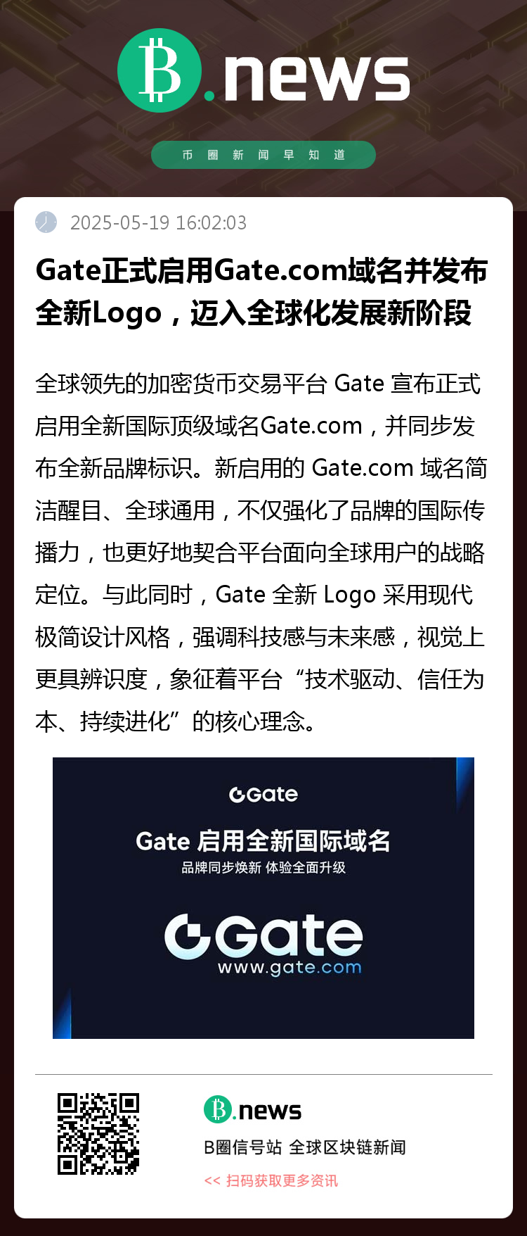Gate 启用全新国际域名 Gate.com,焕新品牌形象迈入全球化新阶段