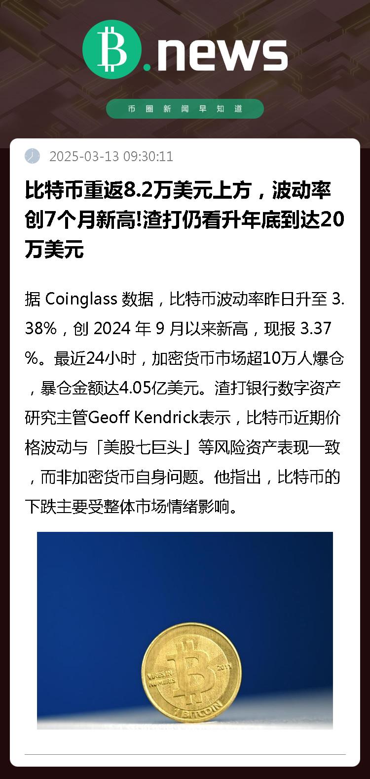 据 Coinglass 数据,比特币波动率昨日升至 3.38%,创 2024 年 9 月以来新高,现报 3.37%。最近24小时,加密货币市场超10万人爆仓,暴仓金额达4.05亿美元。
