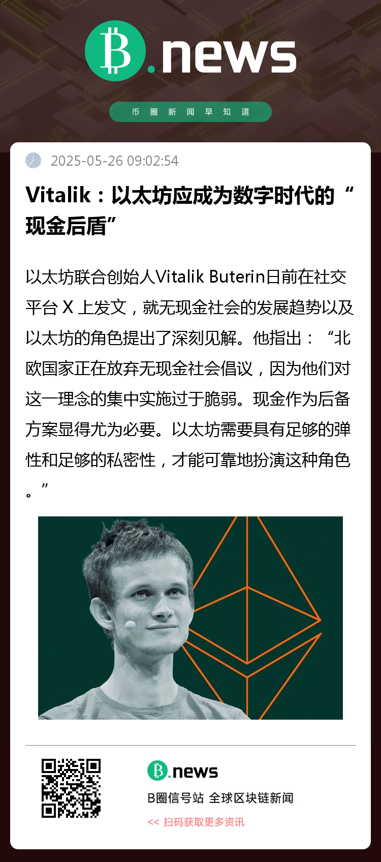 以太坊联合创始人Vitalik Buterin日前在社交平台 X 上发文,就无现金社会的发展趋势以及以太坊的角色提出了深刻见解。他指出: