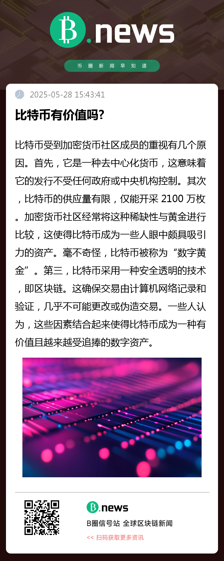 一些人认为,这些因素结合起来使得比特币成为一种有价值且越来越受追捧的数字资产。