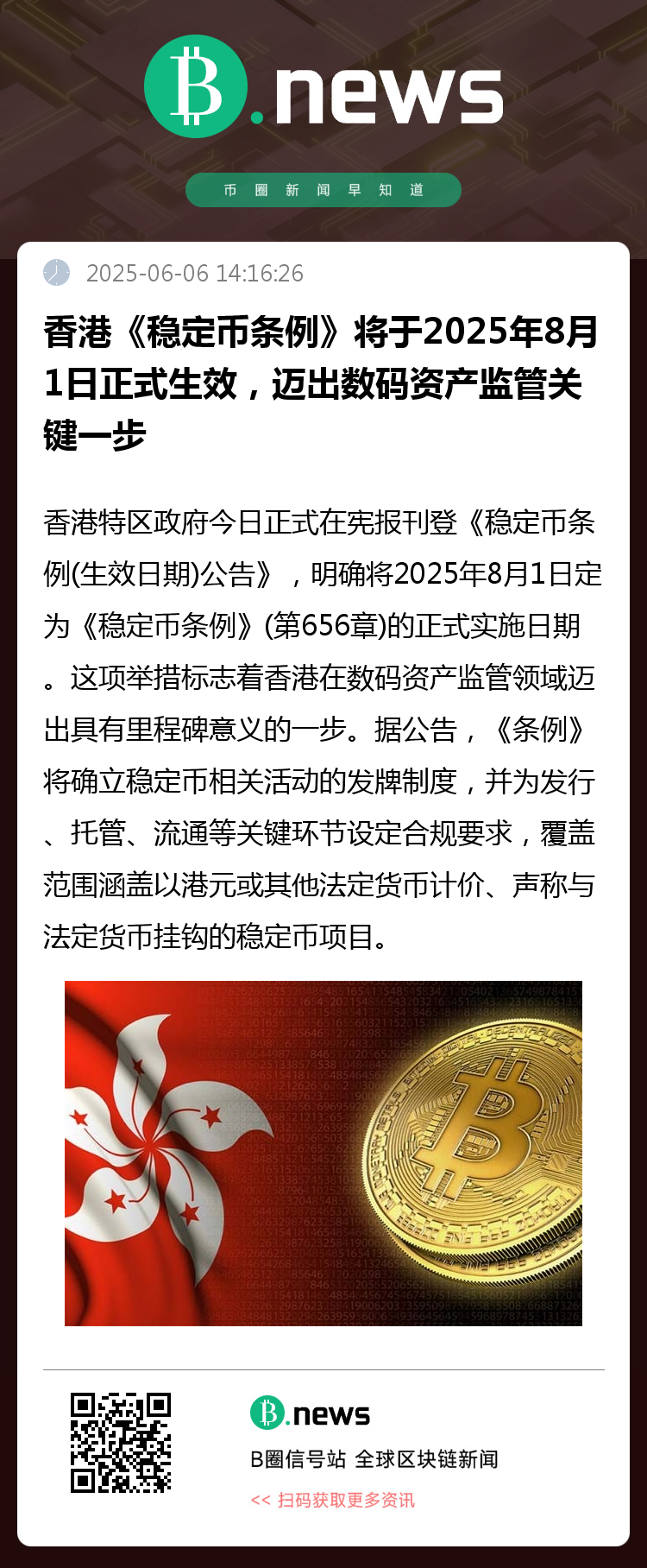 香港特区政府今日(6月6日)正式在宪报刊登《稳定币条例(生效日期)公告》,明确将2025年8月1日定为《稳定币条例》(第656章)的正式实施日期。这项举措标志着香港在数码资产监管领域迈出具有里程碑意义的一步。