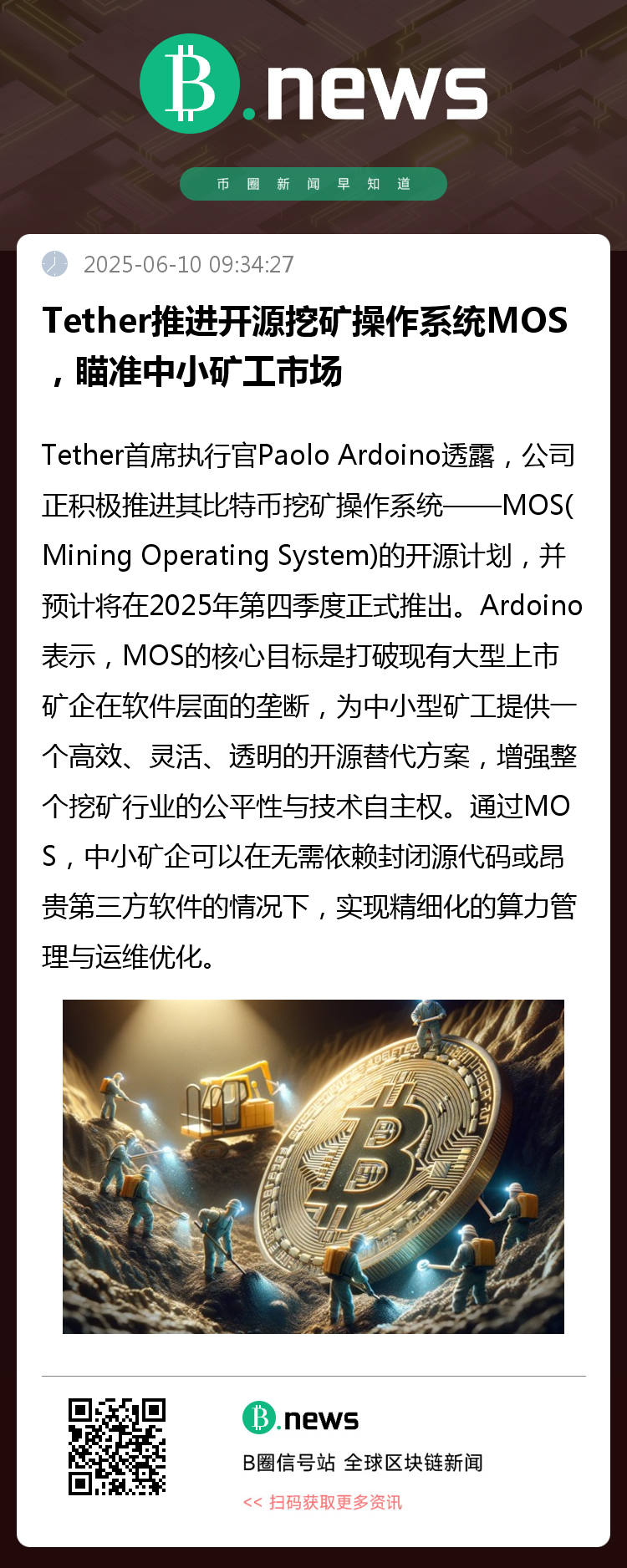 在Tether不断拓展其在比特币挖矿、AI基础设施和能源产业的布局背景下,MOS的发布不仅代表其技术版图的进一步延伸,也折射出当前矿业领域对开源、高性能、可持续工具的迫切需求。