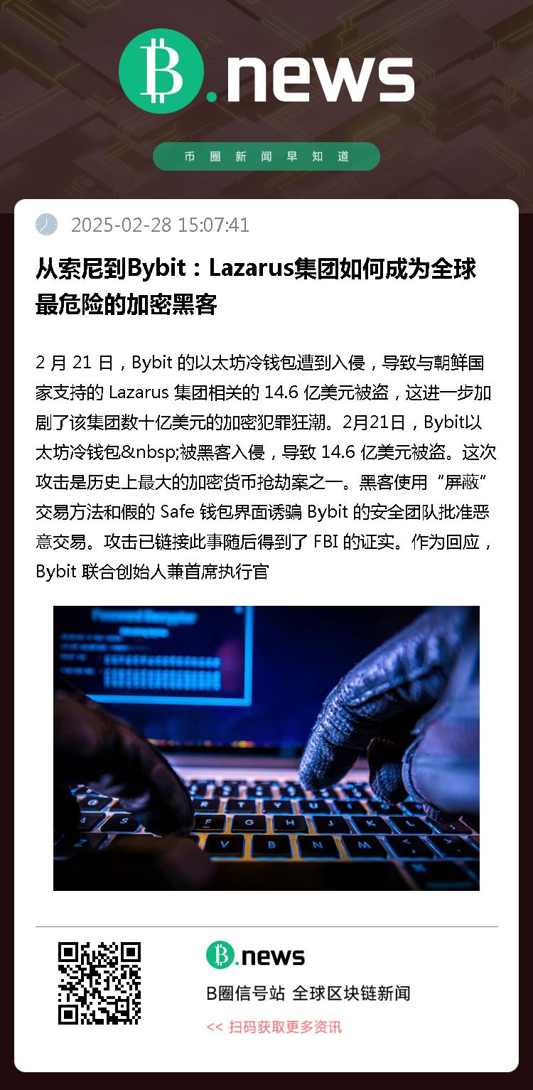 2 月 21 日,Bybit 的以太坊冷钱包遭到入侵,导致与朝鲜国家支持的 Lazarus 集团相关的 14.6 亿美元被盗,这进一步加剧了该集团数十亿美元的加密犯罪狂潮。