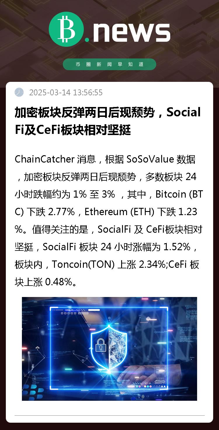 值得关注的是,SocialFi 及 CeFi 板块相对坚挺,SocialFi 板块 24 小时涨幅为 1.52%,板块内,Toncoin(TON) 上涨 2.34%;CeFi 板块上涨 0.48%,其中,Binance coin(BNB) 受阿布扎比投资公司 MGX 向币安投资等因素影响,24 小时上涨 1.49%。同时,反映板块历史行情的 ssiSocialFi 及 ssiCeFi 24 小时分别上涨 3.20%、0.67%,但周回报率分别为 -5.66%、-3.22%。