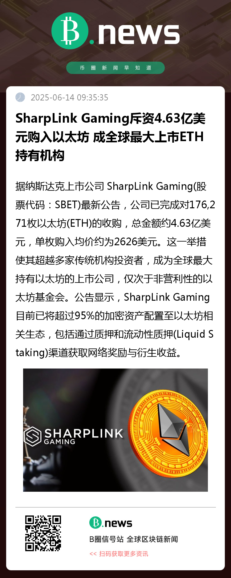 值得关注的是,SharpLink的大额购币行为可能对市场短期流动性与价格预期产生正面影响,后续其如何进行风险对冲与资产透明化披露,或将受到监管与市场的高度关注。