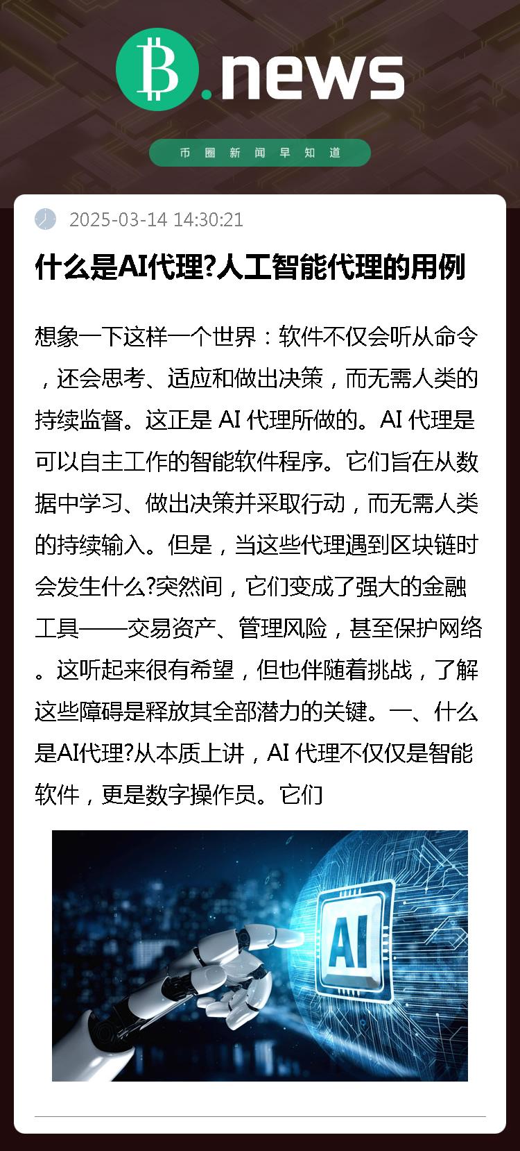 在加密货币的世界里,它们开启了全新的可能性。从执行瞬间交易的算法交易机器人到处理 DeFi 平台上查询的人工智能客户支持,这些代理正在重塑我们与数字资产的互动方式。