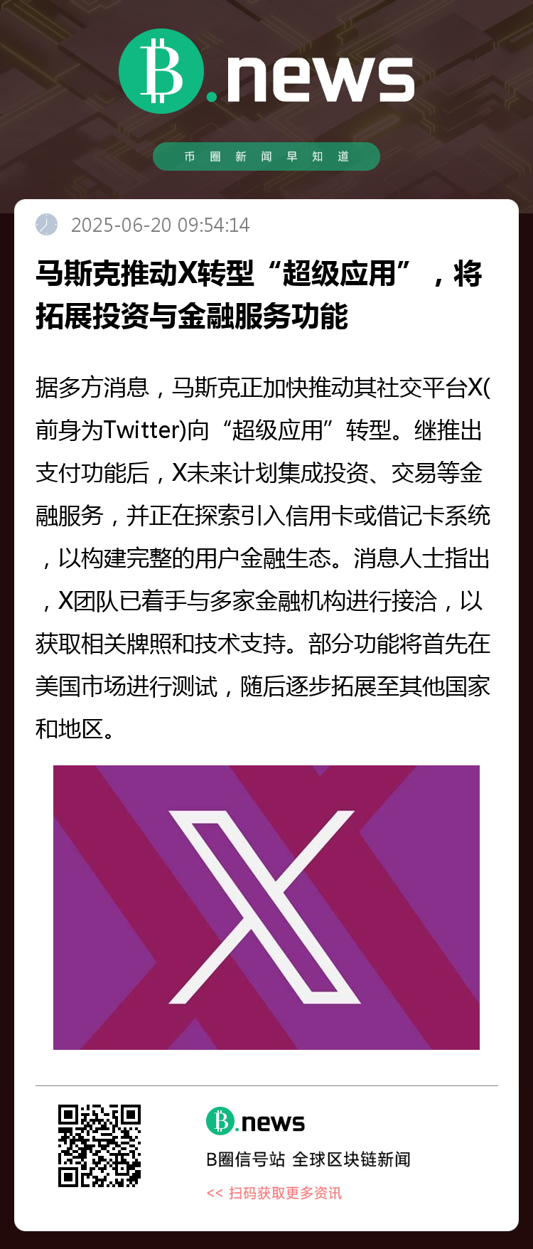 据多方消息,马斯克正加快推动其社交平台X(前身为Twitter)向“超级应用”转型。继推出支付功能后,X未来计划集成投资、交易等金融服务,并正在探索引入信用卡或借记卡系统,以构建完整的用户金融生态。