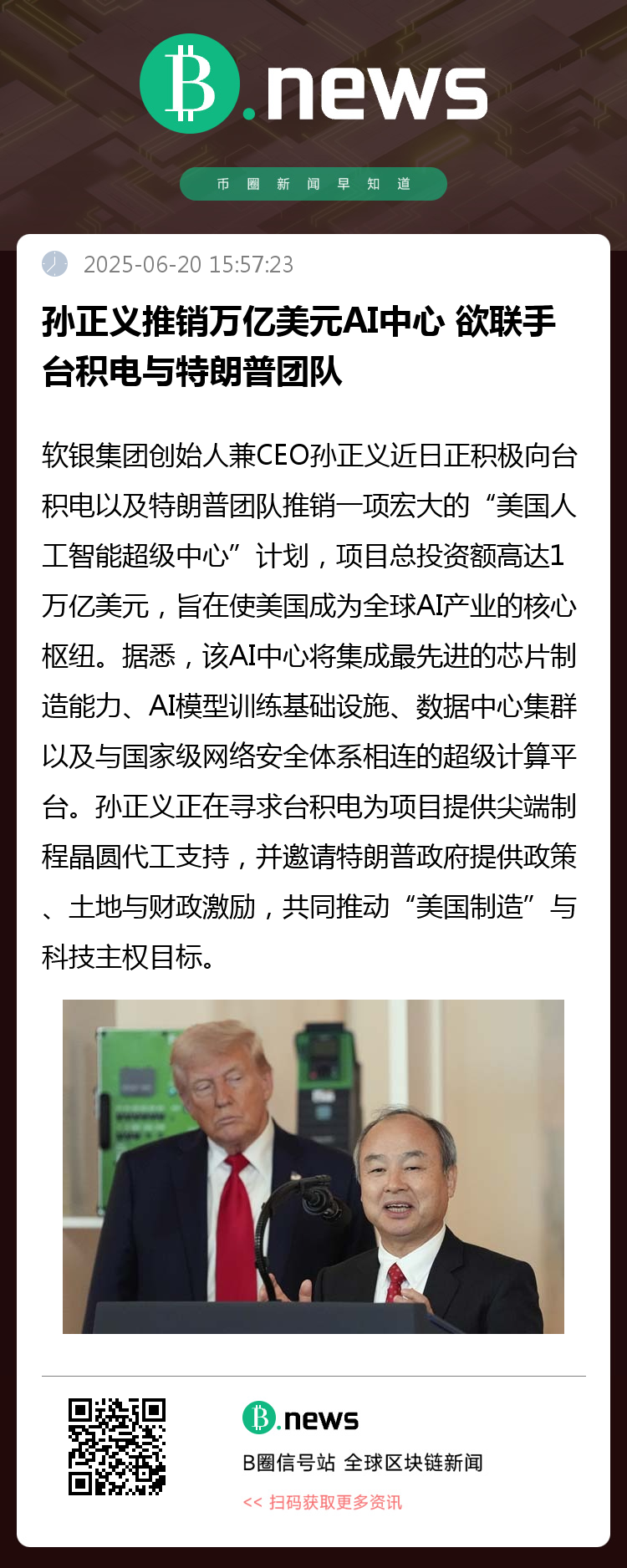 据悉,该AI中心将集成最先进的芯片制造能力、AI模型训练基础设施、数据中心集群以及与国家级网络安全体系相连的超级计算平台。孙正义正在寻求台积电为项目提供尖端制程晶圆代工支持,并邀请特朗普政府提供政策、土地与财政激励,共同推动“美国制造”与科技主权目标。