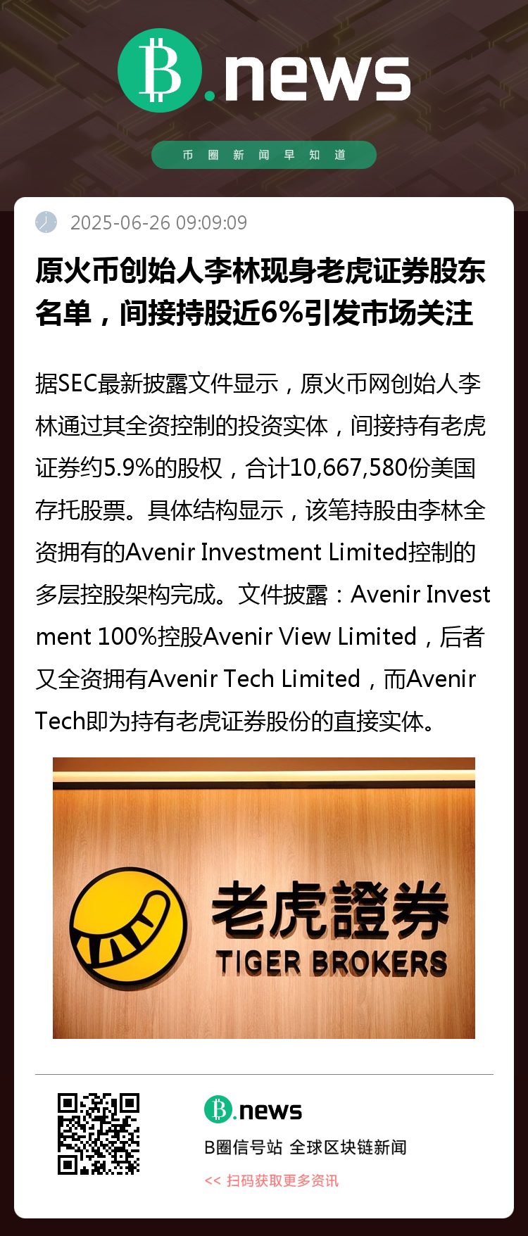 分析人士认为,此次入股老虎证券可能代表李林将视野从数字资产交易平台扩展至合规金融科技服务平台,尤其是在全球监管趋严与传统金融加速数字化转型背景下,这种“加密基因+金融科技”的资本配置方式,或将带来新的协同效应。