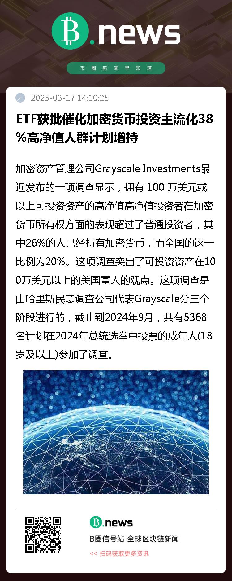 Grayscale分销和合作主管John Hoffman表示:“这些新数据突显了高净值投资者对加密货币作为潜在长期投资机会的信心日益增强。”