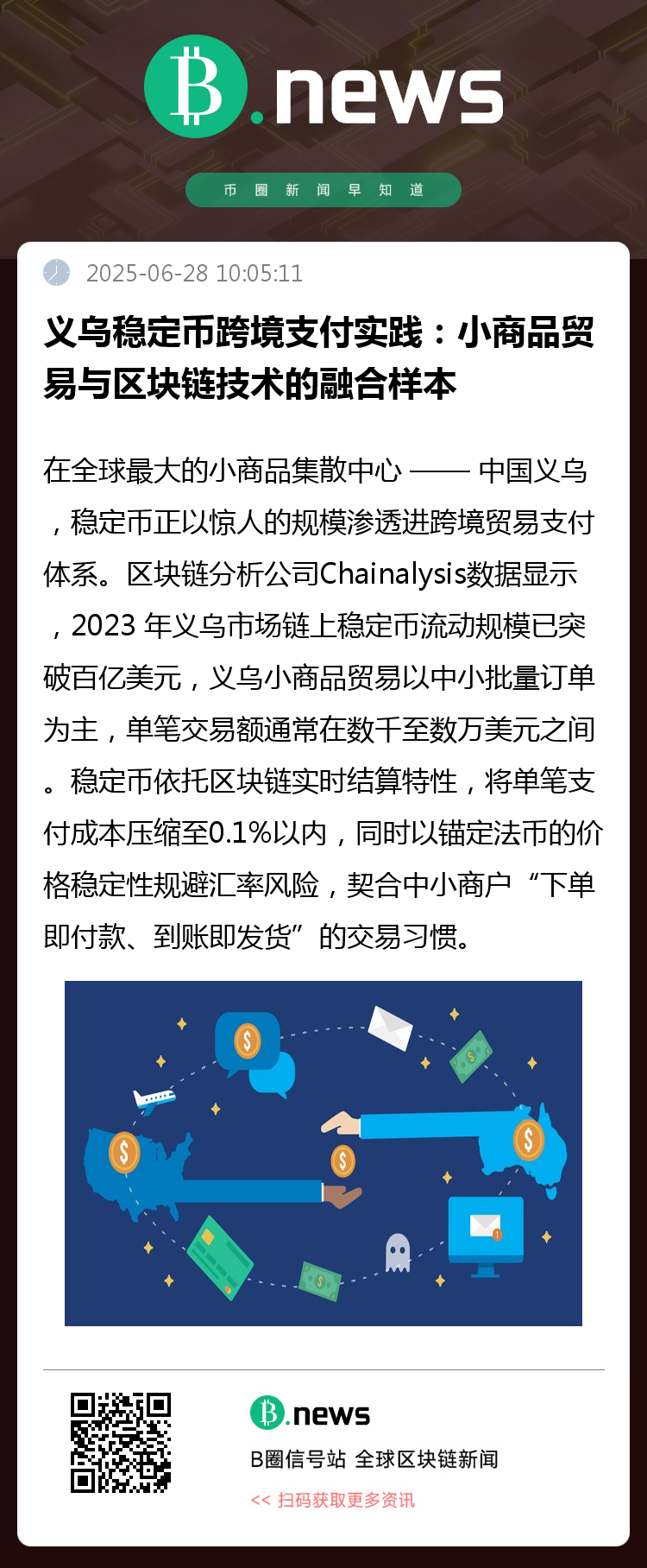 从鸡毛换糖到链上百亿美元流动,义乌的变迁映射出中国实体经济与数字技术融合的韧性。当稳定币成为连接全球 210 万种小商品的 “数字纽带”,其意义已超越支付工具本身 —— 它不仅重构了跨境贸易的结算逻辑,更预示着一个以区块链为底层、以真实场景为支撑的数字经济新生态正在成型。