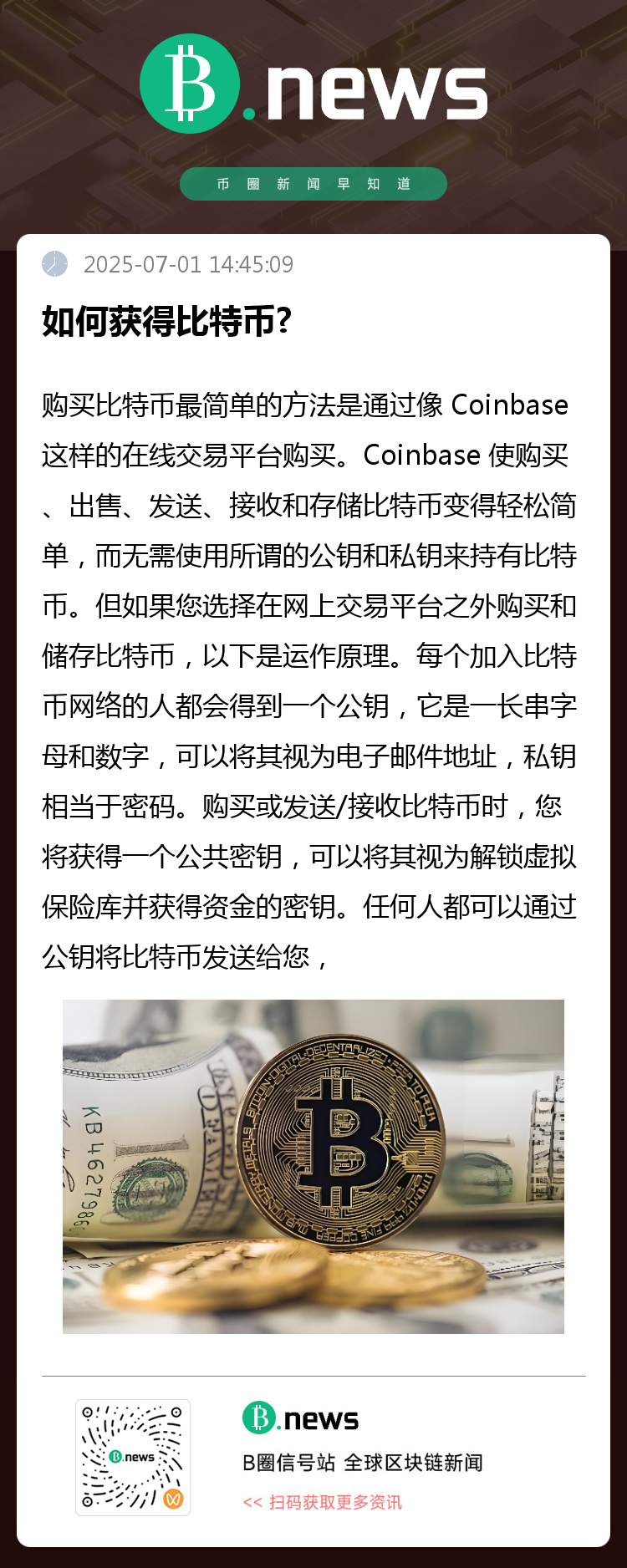 购买比特币最简单的方法是通过像 Coinbase 这样的在线交易平台购买。Coinbase 使购买、出售、发送、接收和存储比特币变得轻松简单,而无需使用所谓的公钥和私钥来持有比特币。