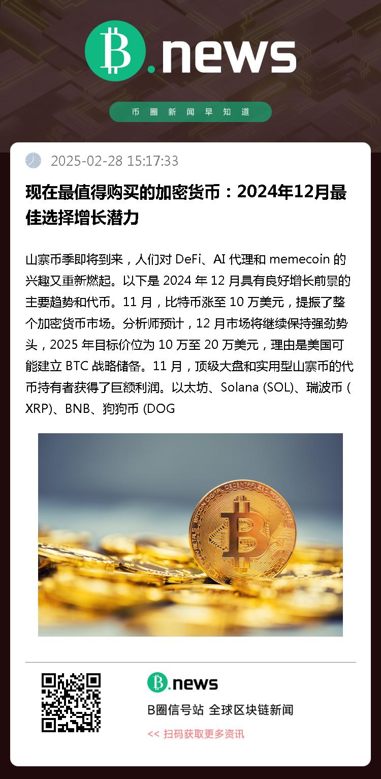 2024 年 12 月最值得投资的加密货币