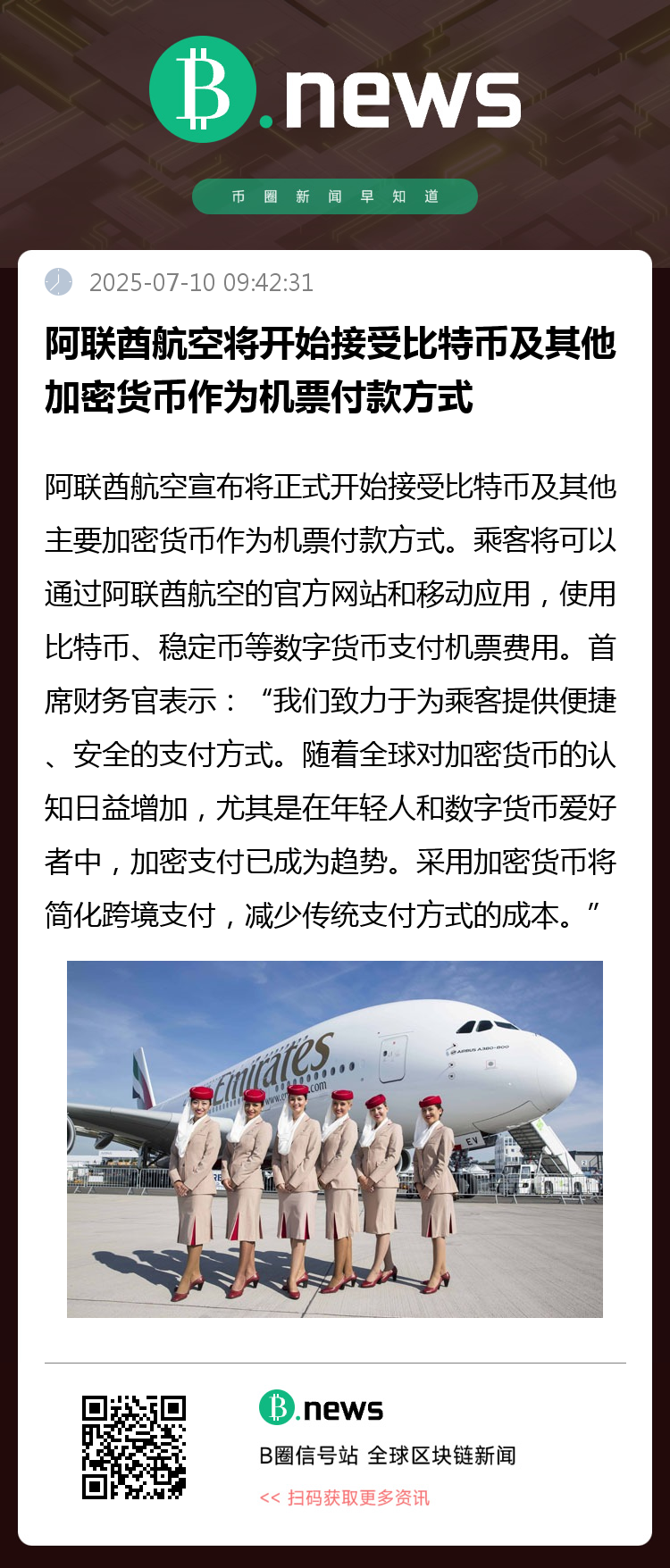 阿联酋航空还强调,将确保所有加密货币支付采用最先进的区块链技术,保障交易的安全性与透明性。此外,公司还将与多个加密支付网关合作,确保支付过程符合当地监管要求。