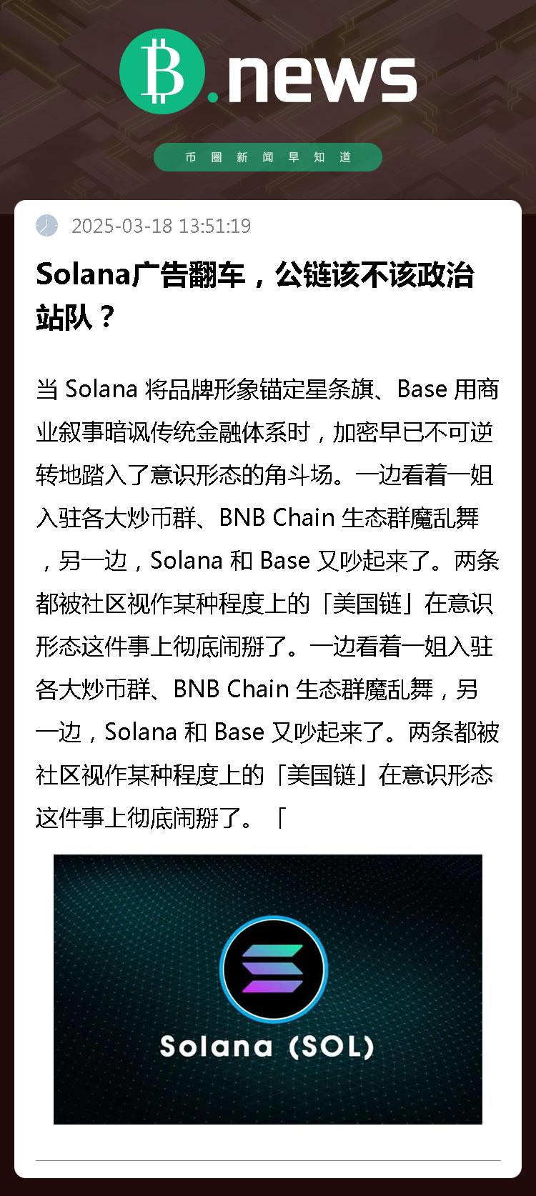 当 Solana 将品牌形象锚定星条旗、Base 用商业叙事暗讽传统金融体系时,加密早已不可逆转地踏入了意识形态的角斗场。