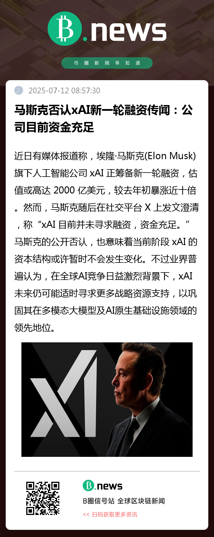 马斯克的公开否认,也意味着当前阶段 xAI 的资本结构或许暂时不会发生变化。不过业界普遍认为,在全球AI竞争日益激烈背景下,xAI未来仍可能适时寻求更多战略资源支持,以巩固其在多模态大模型及AI原生基础设施领域的领先地位。