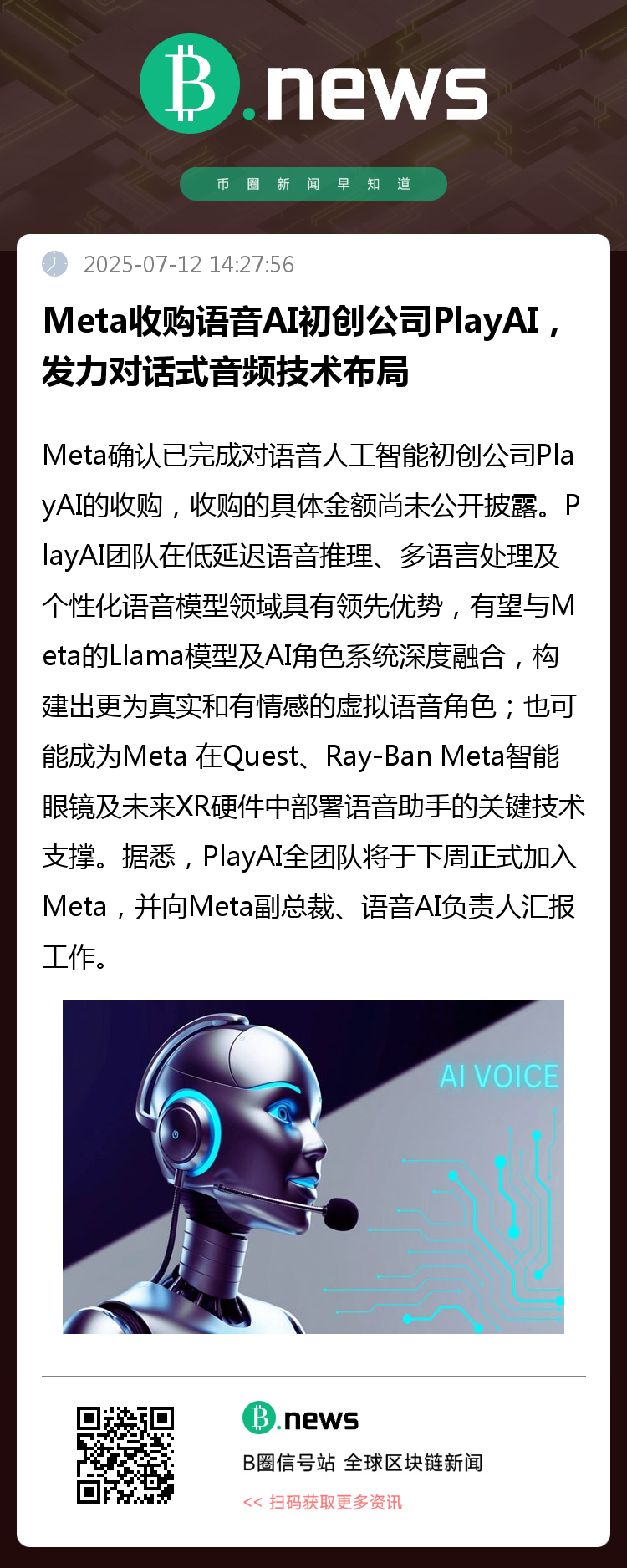 Meta 发言人表示:“我们正迈向一个以语音和自然语言为核心的交互新时代,PlayAI 的加入将帮助我们构建更自然、实时和沉浸式的 AI 体验,无论是在 Messenger、WhatsApp、Reels 还是未来的元宇宙中。”