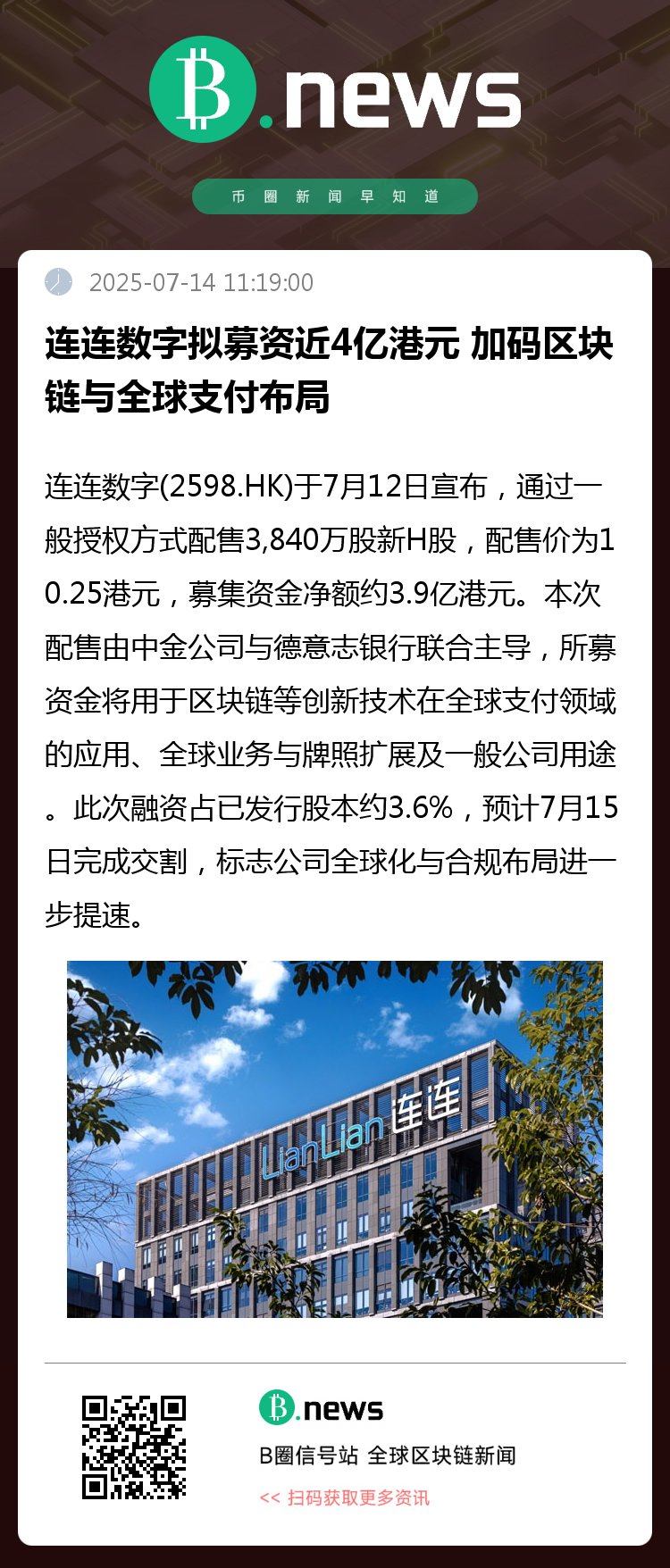 连连数字完成3.9亿港元H股配售,发力区块链创新与全球合规扩展