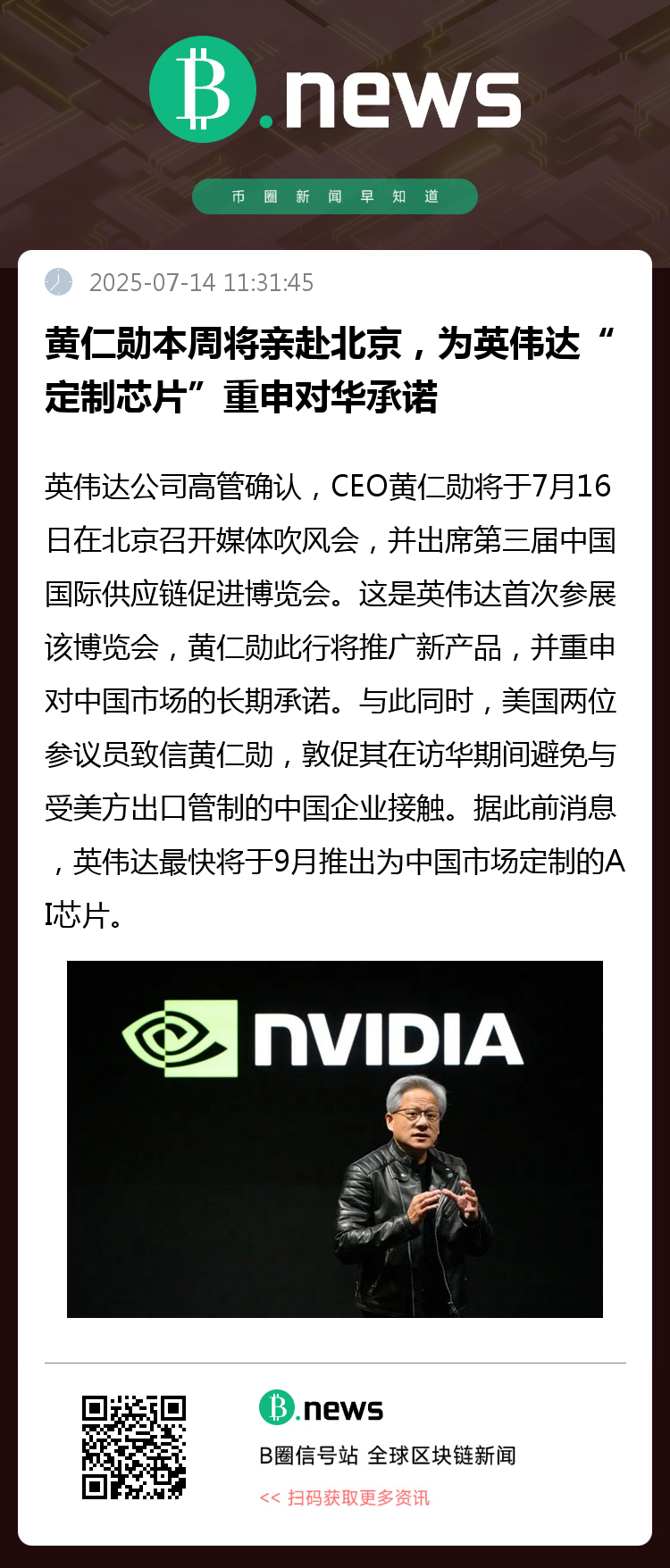 据英伟达公司一位高管透露,首席执行官黄仁勋将于7月16日在北京举行媒体吹风会。这一行程恰逢第三届中国国际供应链促进博览会开幕,英伟达也将首次参展。黄仁勋此行不仅将推介英伟达面向中国市场的新产品,还计划重申公司对中国市场的长期承诺。