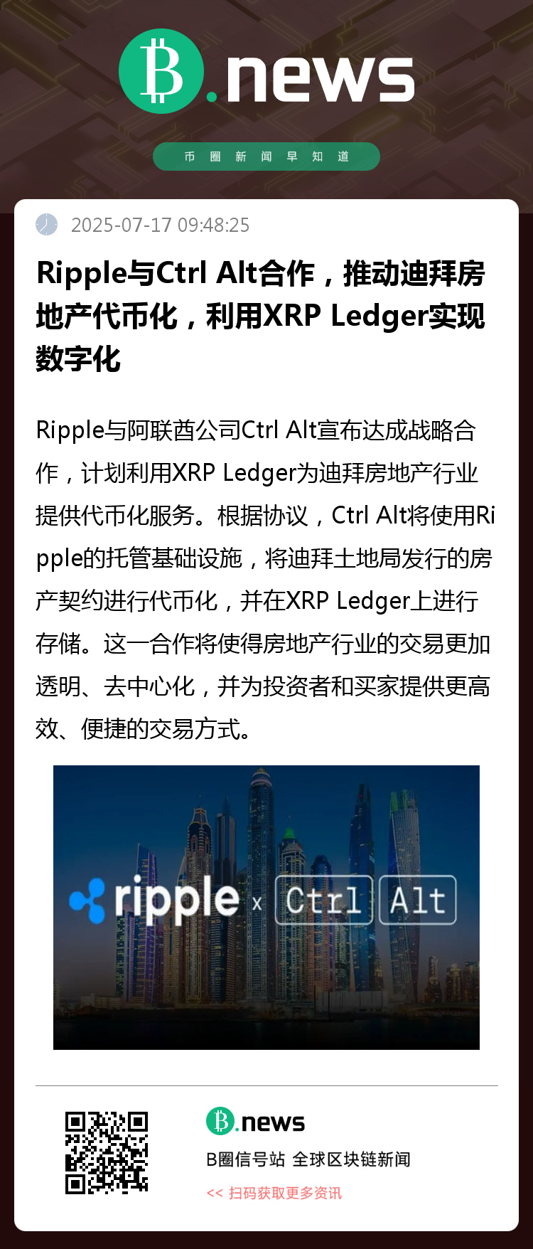 随着迪拜成为全球区块链和加密货币的重要中心之一,Ripple与Ctrl Alt的合作标志着中东地区在虚拟资产领域迈出了关键一步。此举不仅促进了数字货币在房地产领域的应用,也推动了全球金融市场的创新发展。
