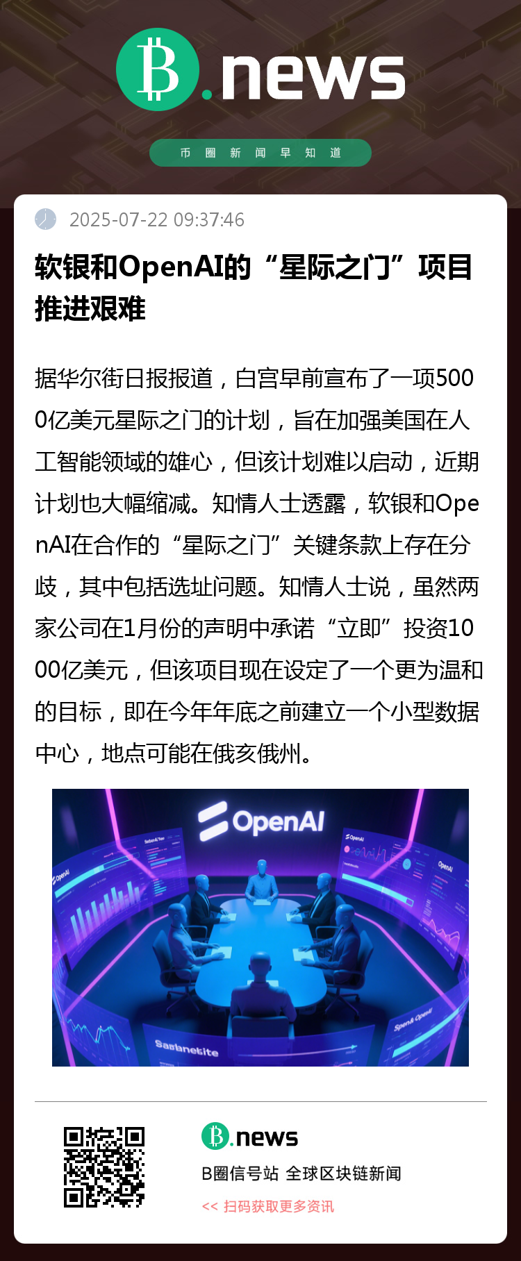知情人士透露,软银和OpenAI在合作的“星际之门”关键条款上存在分歧,其中包括选址问题。