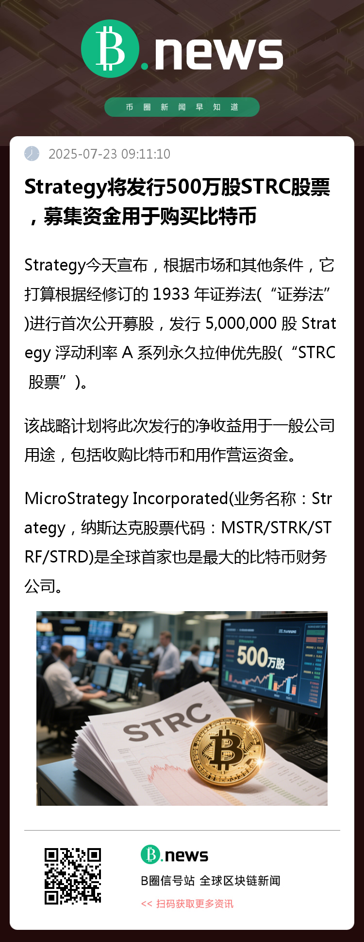 该战略计划将此次发行的净收益用于一般公司用途,包括收购比特币和用作营运资金。